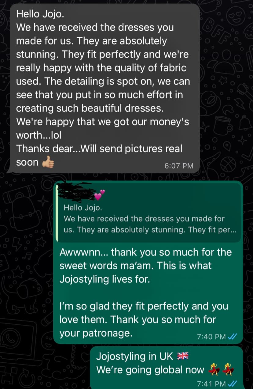 We are proud to have served and still serving elegant and sophisticated women not only in Nigeria, but also across the globe. We are committed to making our fashion accessible to women everywhere.