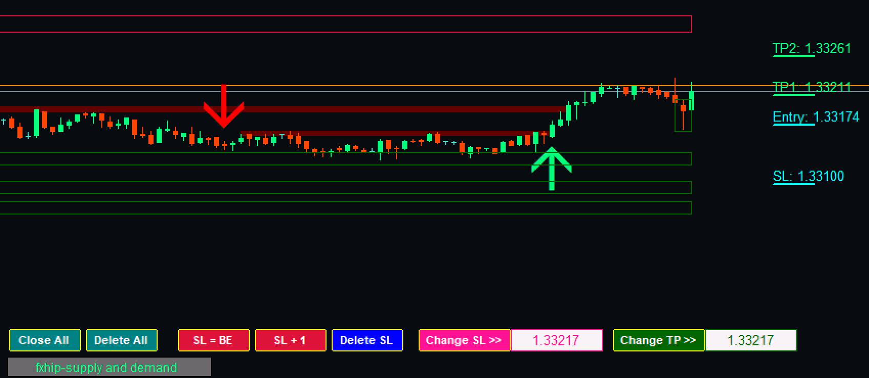 Forexhip Scalper v3 is a Non-Repaint trading system usually being sold for 69$. It’s a Forex Technical Analysis Indicator used to forecast price changes in the currency market with Supply and Demand and special Forexhip Tool widget. By using this Indicator, traders can make decisions about market entry and exit. Its accuracy is above 84%. You can set this free forex Indicator to send you a signal alert via platform pop-ups.