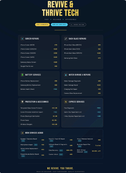 Revive & Thrive Tech: Fast, reliable repairs for your damaged devices. Get back to what matters today!